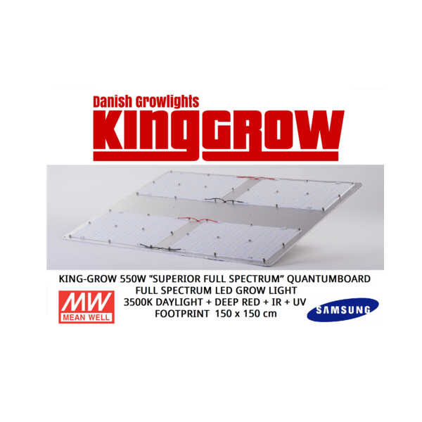 NY VERSION, ERSTATTER VORES TIDLIGERE QB MODELLER. KING-GROW QB LED LAMPEN er det nyeste indenfor LED plantelys, baseret på den nyeste og bedste QuantumBoard TEKNOLOGI – hvor lyset udsendes af LED chips. QuantumBoard teknologien har på kort tid revolutioneret markedet indenfor vækstlys og er fremtidens vækstlys. Lampen bruger 550W, men yder en effekt svarende til…